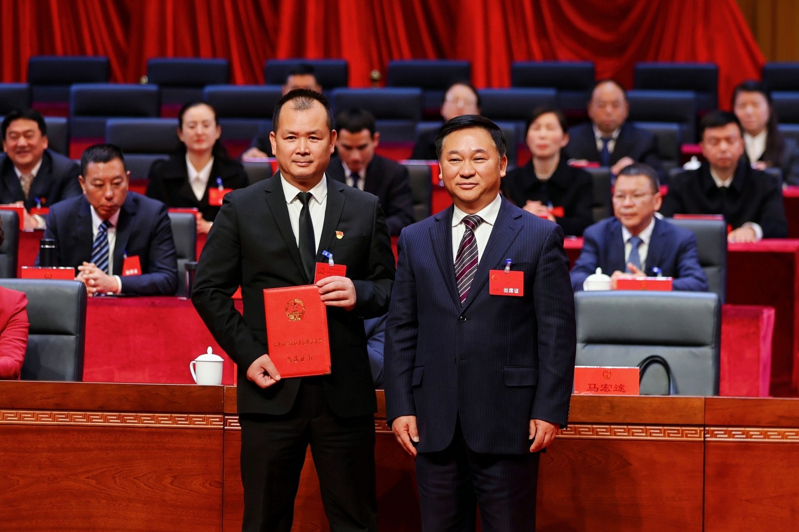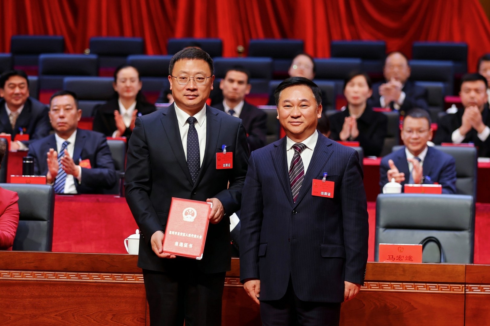 区人大常委会主任马宏途为新当选的区人民政府区长、区人大农业与农村委主任委员颁发当选证书。
